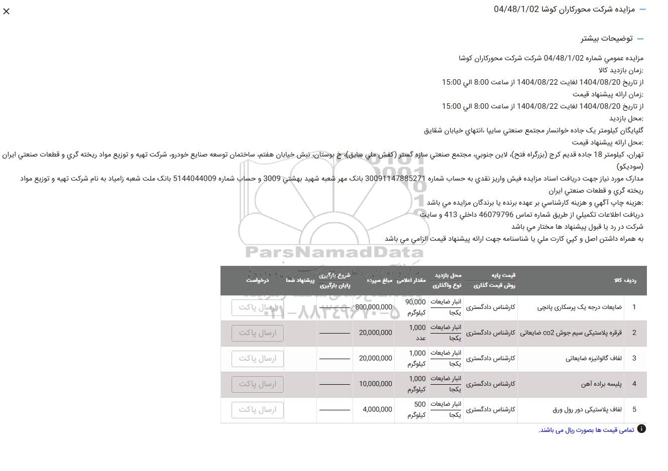 مزایده شرکت محورکاران کوشا 04.48.1.02