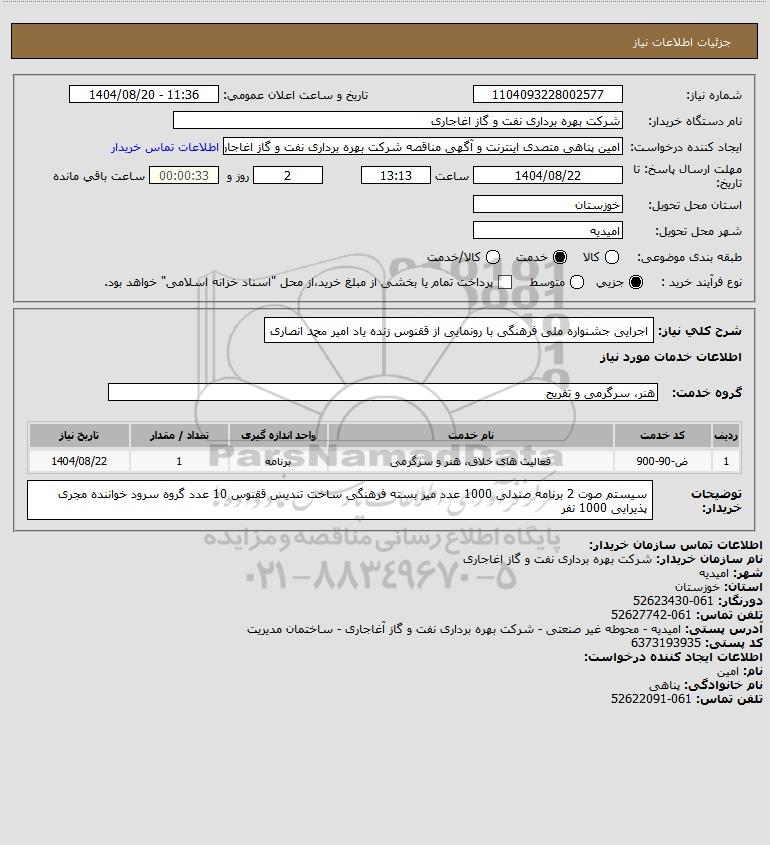 تلفن:5- 88349670 (021) فکس: 88349673 (021) Website: www.ParsNamadData.com E-mail: Info@ParsNamadData.com استعلام اجرایی جشنواره ملی فرهنگی با رونمایی از ققنوس زنده یاد امیر محمد انصاری