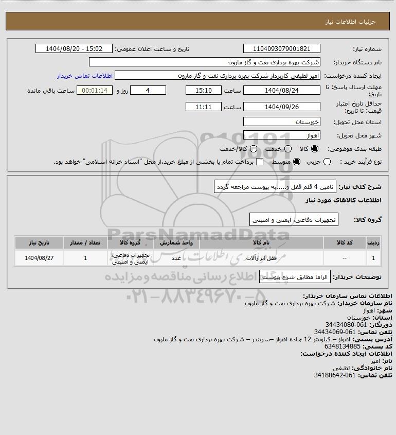 تلفن:5- 88349670 (021) فکس: 88349673 (021) Website: www.ParsNamadData.com E-mail: Info@ParsNamadData.com استعلام تامین 4 قلم قفل و.....به پیوست مراجعه گردد