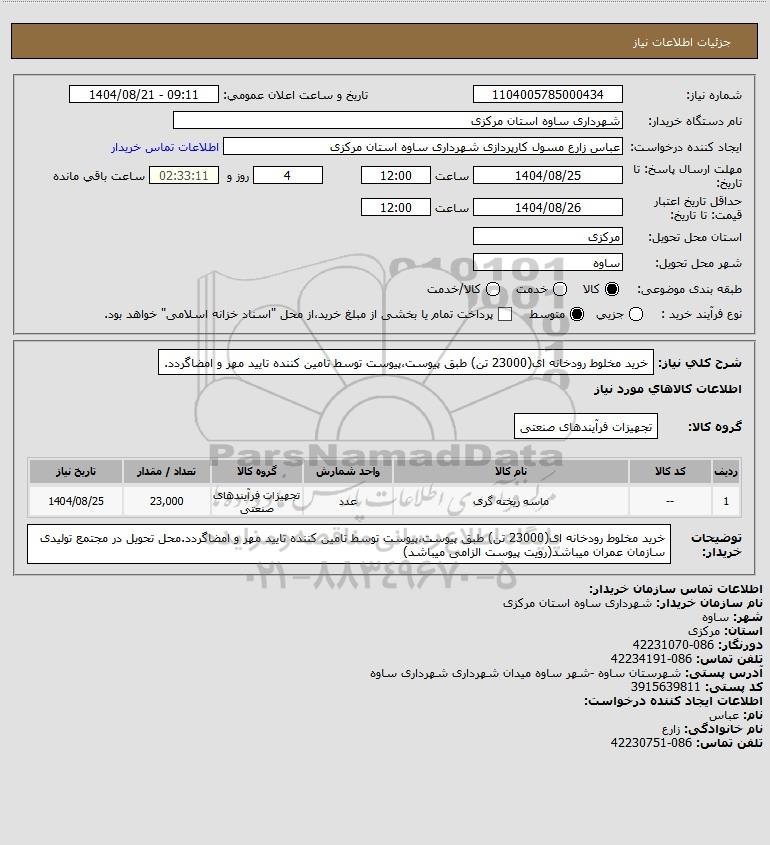 تلفن:5- 88349670 (021) فکس: 88349673 (021) Website: www.ParsNamadData.com E-mail: Info@ParsNamadData.com استعلام خرید مخلوط رودخانه ای(23000 تن) طبق پیوستپیوست توسط تامین کننده تایید مهر و امضاگردد.