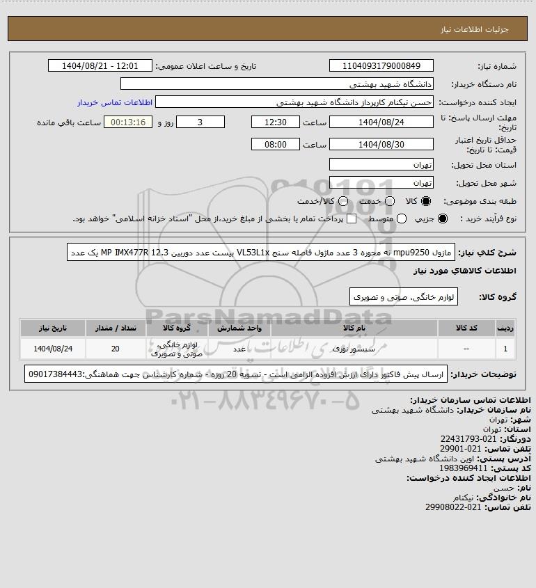 تلفن:5- 88349670 (021) فکس: 88349673 (021) Website: www.ParsNamadData.com E-mail: Info@ParsNamadData.com استعلام مازول mpu9250 نه محوره 3 عدد