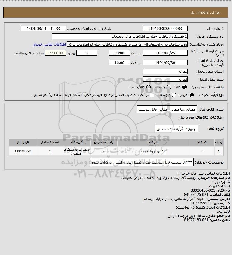 تلفن:5- 88349670 (021) فکس: 88349673 (021) Website: www.ParsNamadData.com E-mail: Info@ParsNamadData.com استعلام مصالح ساختمانی مطابق فایل پیوست