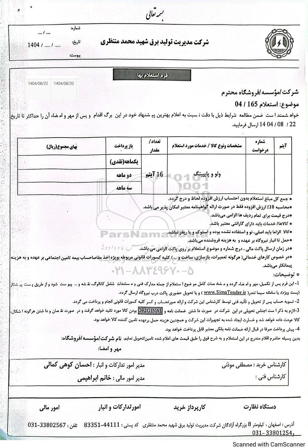 1- این فرم پس از تکمیل مهر و امضاء گردد و مشخصات کامل موضوع استعلام از جمله مدارک فنی و مستندات شامل کاتالوگ، نقشه و .... پیوست شود و از طریق پست پیشتاز (پست ویژه) با سامانه سیما تندر (www.SimaTender.ir) و یا تحویل حضوری پاکت درب نیروگاه ارسال گردد.