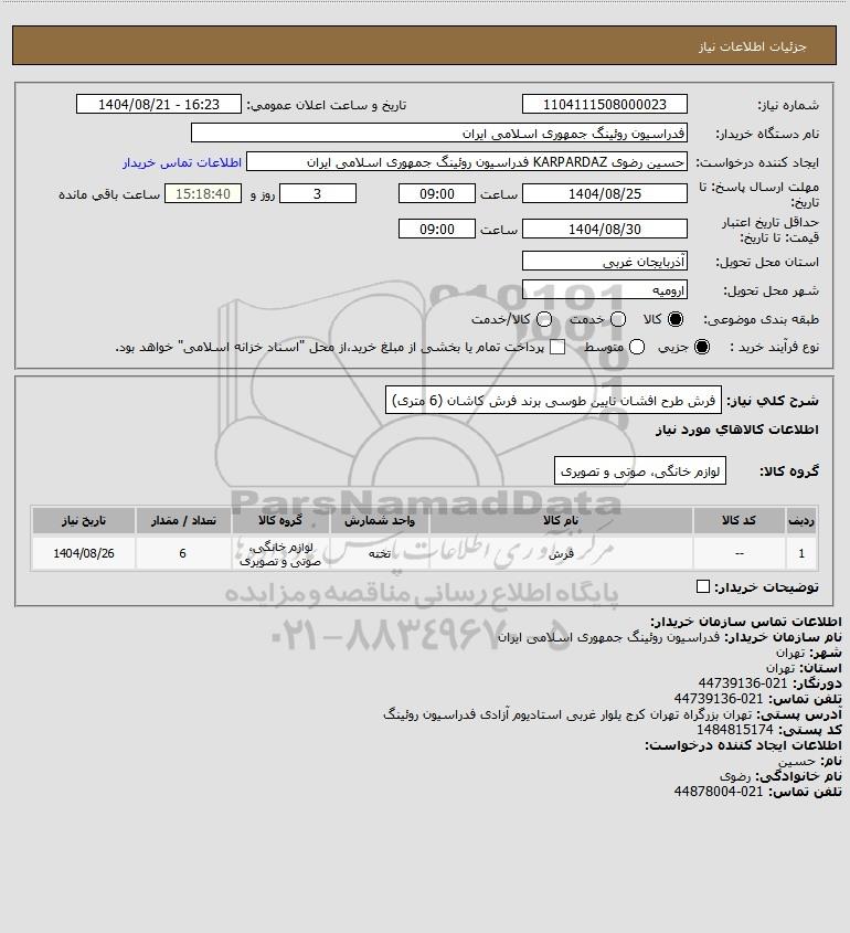 تلفن:5- 88349670 (021) فکس: 88349673 (021) Website: www.ParsNamadData.com E-mail: Info@ParsNamadData.com استعلام فرش طرح افشان نایین طوسی برند فرش کاشان (6 متری)