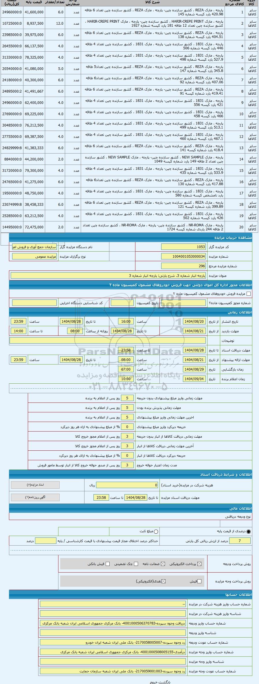 مزایده پارچه انبار شماره 3