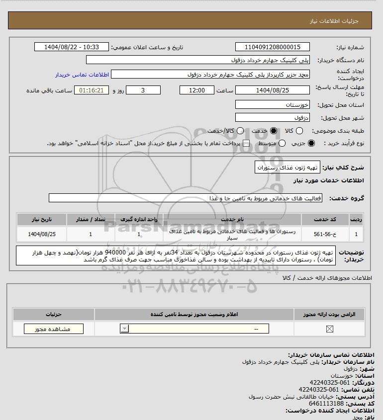 تلفن:5- 88349670 (021) فکس: 88349673 (021) Website: www.ParsNamadData.com E-mail: Info@ParsNamadData.com استعلام تهیه ژتون غذای رستوران