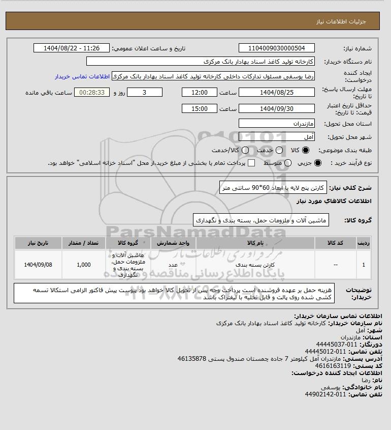 تلفن:5- 88349670 (021) فکس: 88349673 (021) Website: www.ParsNamadData.com E-mail: Info@ParsNamadData.com استعلام کارتن پنج لایه با ابعاد 60*90 سانتی متر