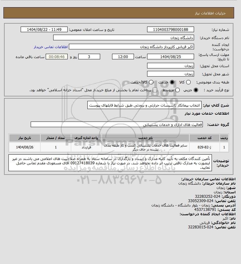 تلفن:5- 88349670 (021) فکس: 88349673 (021) Website: www.ParsNamadData.com E-mail: Info@ParsNamadData.com استعلام انتخاب پیمانکار تاسیسات حرارتی و برودتی طبق شرایط فایلهای پیوست
