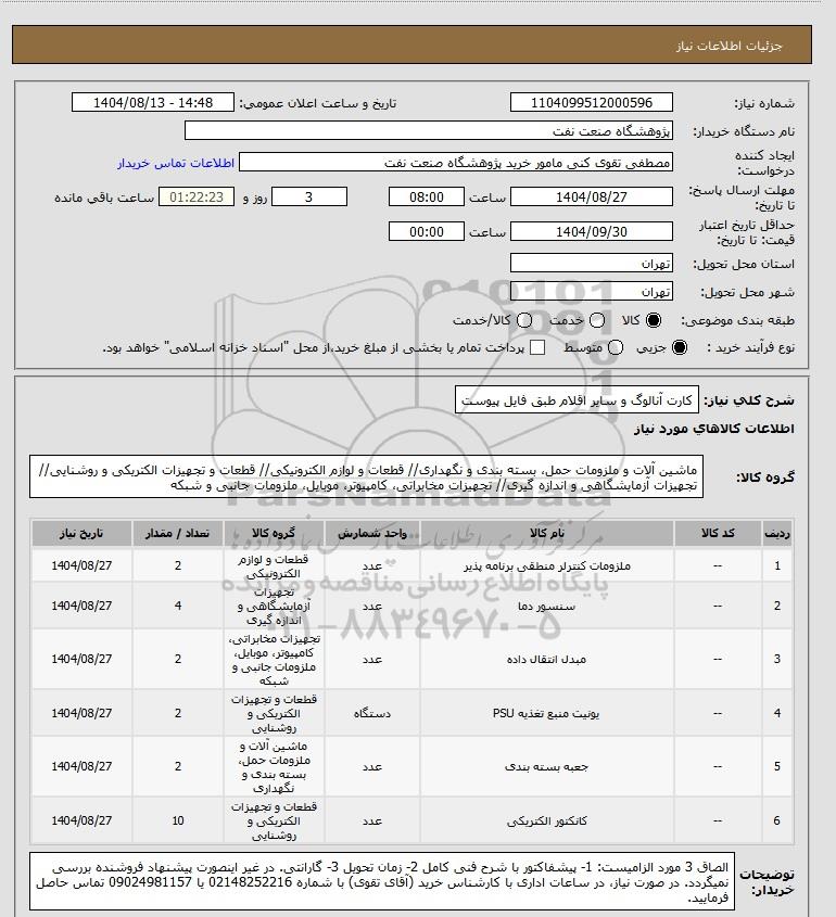 تلفن:5- 88349670 (021) فکس: 88349673 (021) Website: www.ParsNamadData.com E-mail: Info@ParsNamadData.com استعلام کارت آنالوگ و سایر اقلام طبق فایل پیوست