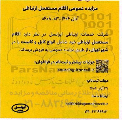 تلفن:5- 88349670 (021) فکس: 88349673 (021) Website: www.ParsNamadData.com E-mail: Info@ParsNamadData.com مزایده عمومی اقلام مستعمل ارتباطی