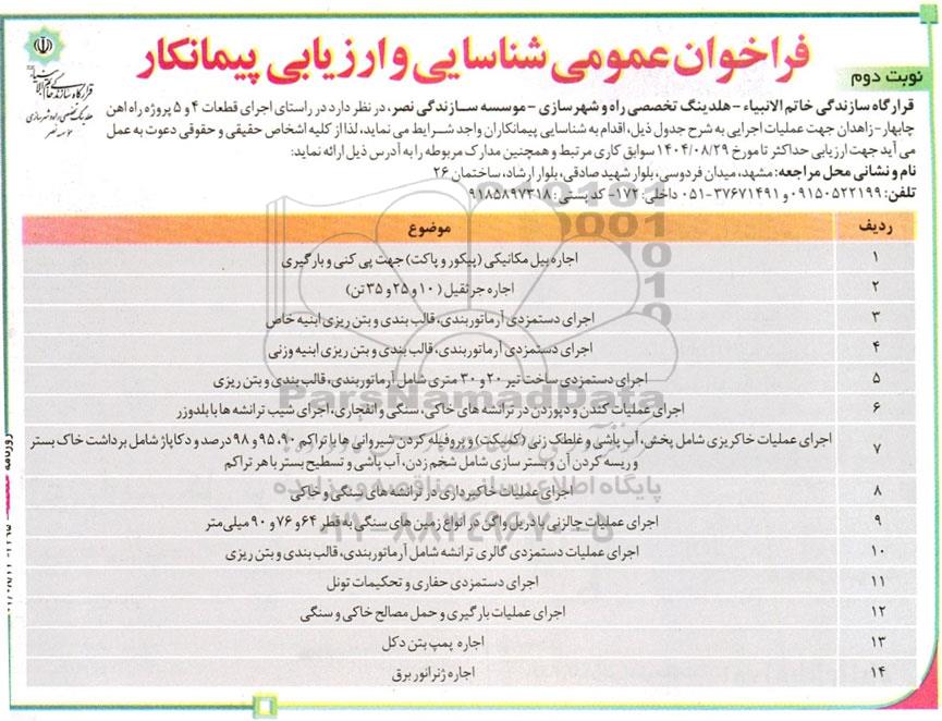 تلفن:5- 88349670 (021) فکس: 88349673 (021) Website: www.ParsNamadData.com E-mail: Info@ParsNamadData.com فراخوان عمومی شناسایی و ارزیابی پیمانکار اجرای قطعات 4 و 5 پروژه راه آهن- نوبت دوم