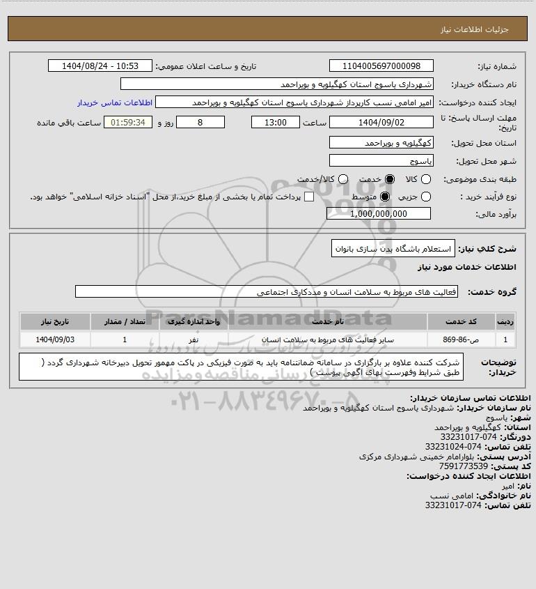 تلفن:5- 88349670 (021) فکس: 88349673 (021) Website: www.ParsNamadData.com E-mail: Info@ParsNamadData.com استعلام استعلام باشگاه بدن سازی بانوان