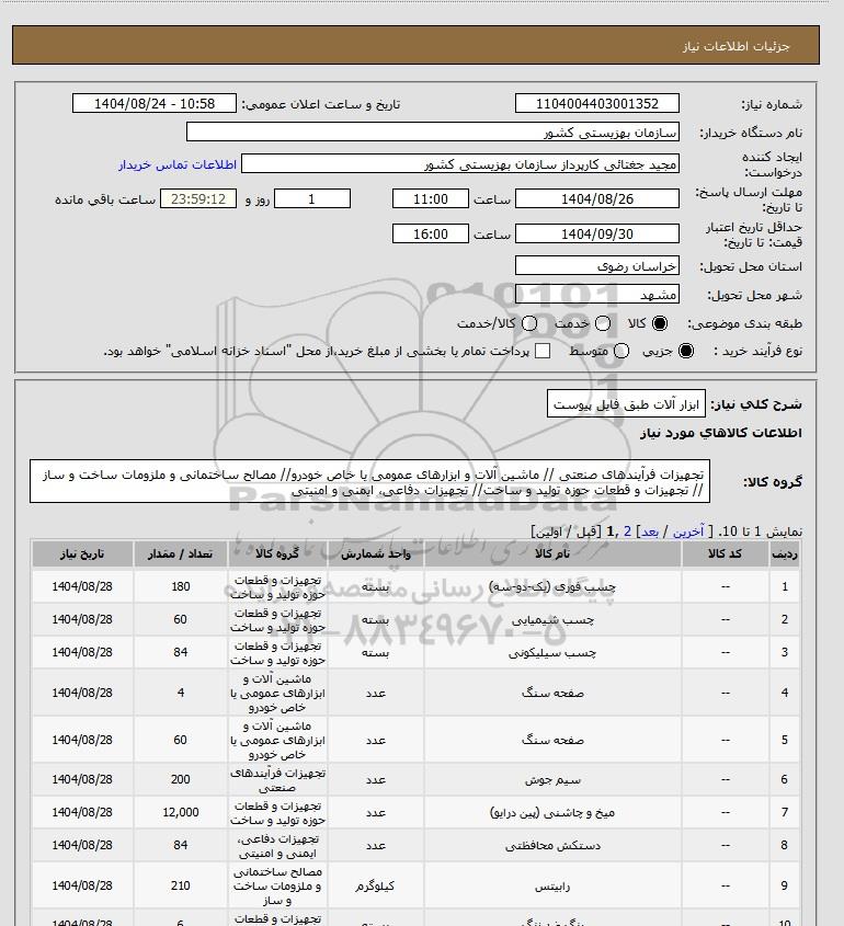 تلفن:5- 88349670 (021) فکس: 88349673 (021) Website: www.ParsNamadData.com E-mail: Info@ParsNamadData.com استعلام ابزار آلات طبق فایل پیوست
