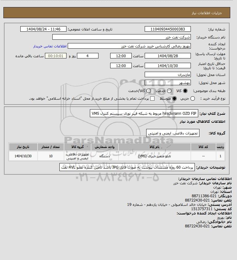 تلفن:5- 88349670 (021) فکس: 88349673 (021) Website: www.ParsNamadData.com E-mail: Info@ParsNamadData.com استعلام hirschmann OZD FIP مربوط به شبکه فیبر نوری سیستم کنترل VMS