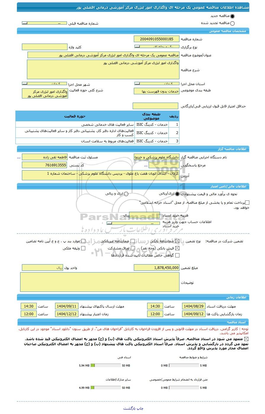 | | | | مبلغ تضمین | 1,878,450,000 | واحد پول | ریال | | توضیحات | |