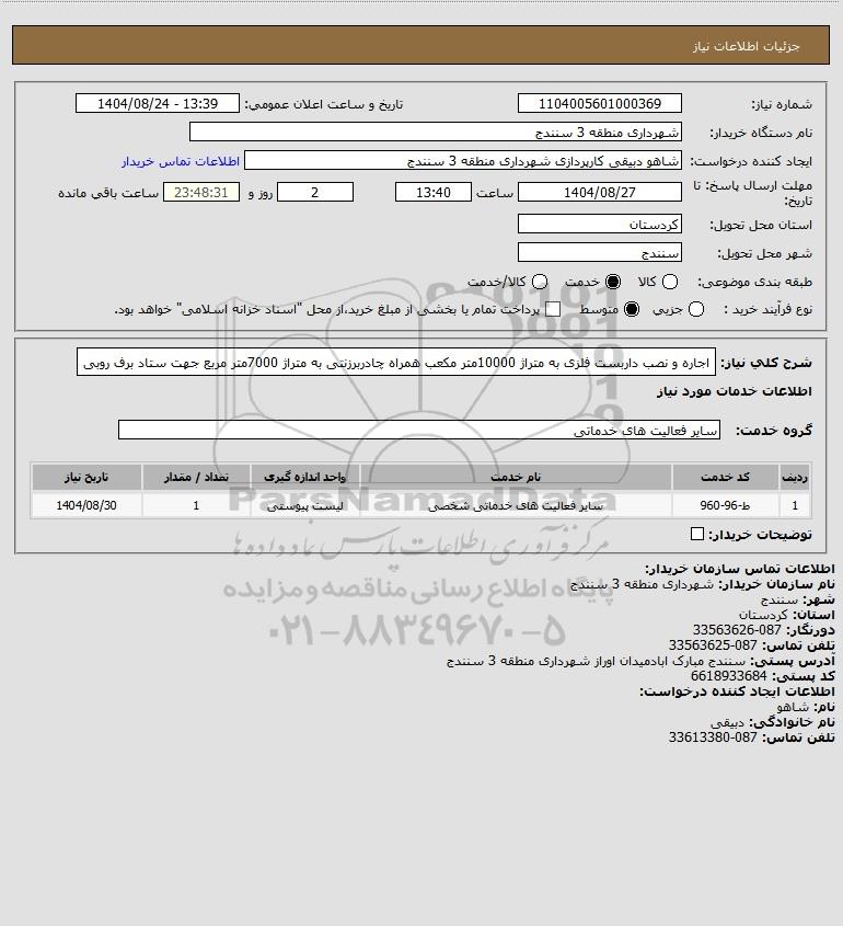 نام سازمان خریدار: شهرداری منطقه 3 سنندج