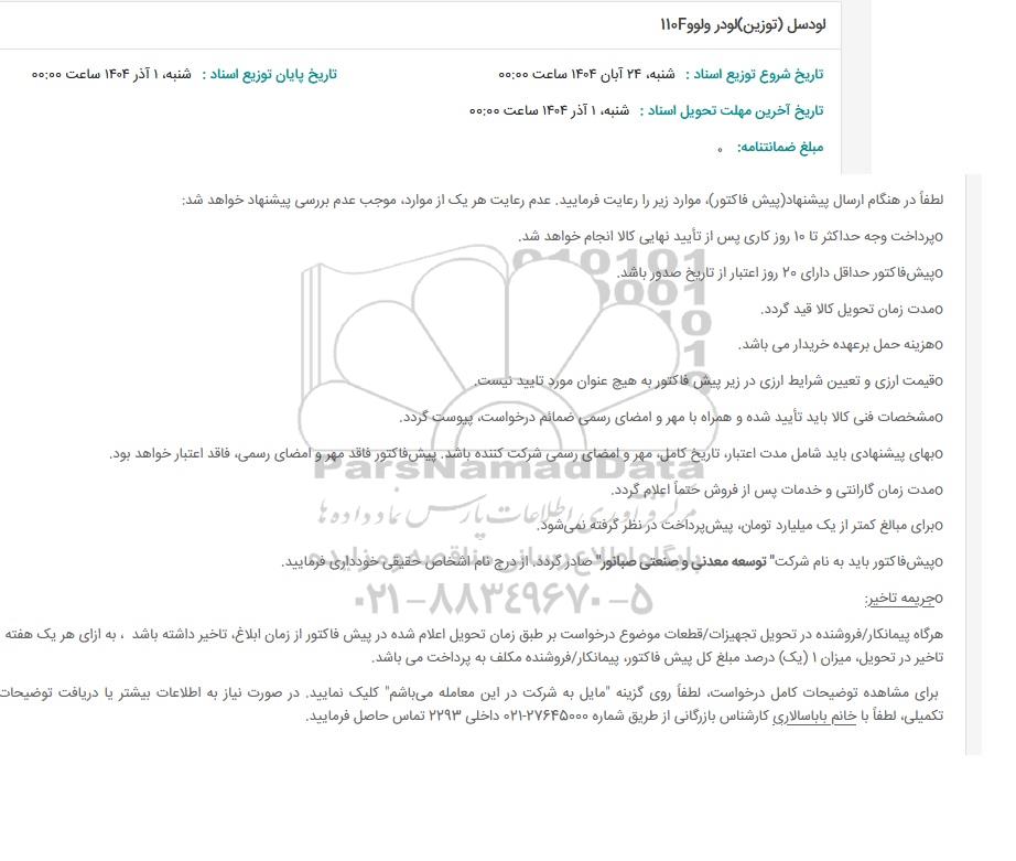 | عنوان آگهی: استعلام لودسل (توزین) لودر ولوو 110F |