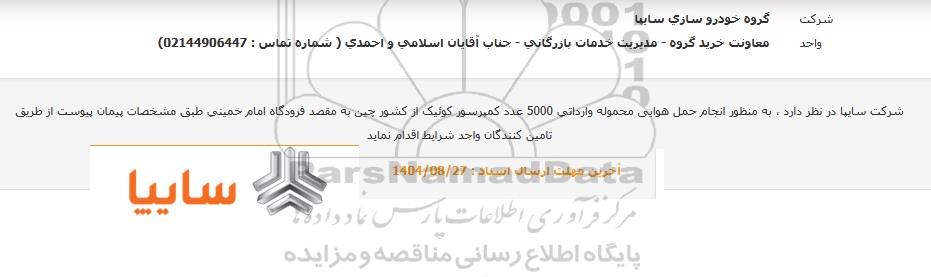 تلفن:5- 88349670 (021) فکس: 88349673 (021) Website: www.ParsNamadData.com E-mail: Info@ParsNamadData.com استعلام انجام حمل هوایی