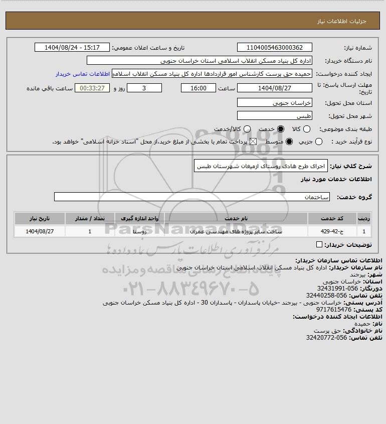 تلفن:5- 88349670 (021) فکس: 88349673 (021) Website: www.ParsNamadData.com E-mail: Info@ParsNamadData.com استعلام اجرای طرح هادی روستای ازمیغان شهرستان طبس