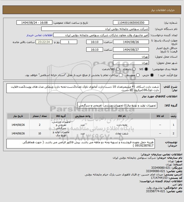 تلفن:5- 88349670 (021) فکس: 88349673 (021) Website: www.ParsNamadData.com E-mail: Info@ParsNamadData.com استعلام شفت دارت اسکای 41 میلیمترتعداد 10 دست-دارت آماتوری ناوک تعداد3دست-تخته دارت وینمکی مدل های پوینت2عدد-فلایت دارت ناوک100میکرون 10 دست