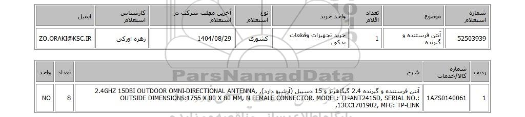 تلفن:5- 88349670 (021) فکس: 88349673 (021) Website: www.ParsNamadData.com E-mail: Info@ParsNamadData.com استعلام آنتن فرستنده و گیرنده