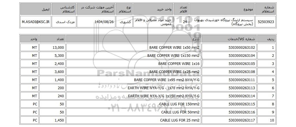 تلفن:5- 88349670 (021) فکس: 88349673 (021) Website: www.ParsNamadData.com E-mail: Info@ParsNamadData.com استعلام سیستم ارتینگ نیروگاه خورشیدی بهبهان (بخش نیروگاه)