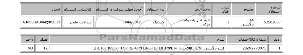 تلفن:5- 88349670 (021) فکس: 88349673 (021) Website: www.ParsNamadData.com E-mail: Info@ParsNamadData.com استعلام فیلتر برگشتی