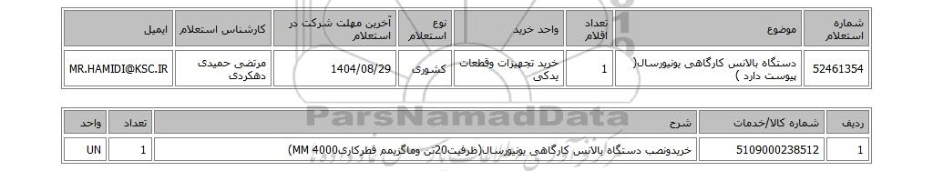 تلفن:5- 88349670 (021) فکس: 88349673 (021) Website: www.ParsNamadData.com E-mail: Info@ParsNamadData.com استعلام دستگاه بالانس کارگاهی یونیورسال( پیوست دارد )