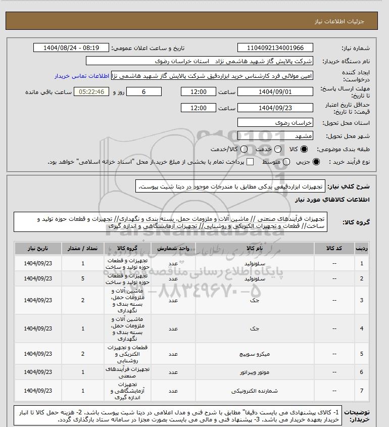 تلفن:5- 88349670 (021) فکس: 88349673 (021) Website: www.ParsNamadData.com E-mail: Info@ParsNamadData.com استعلام تجهیزات ابزاردقیقی یدکی مطابق با مندرجات موجود در دیتا شیت پیوست.