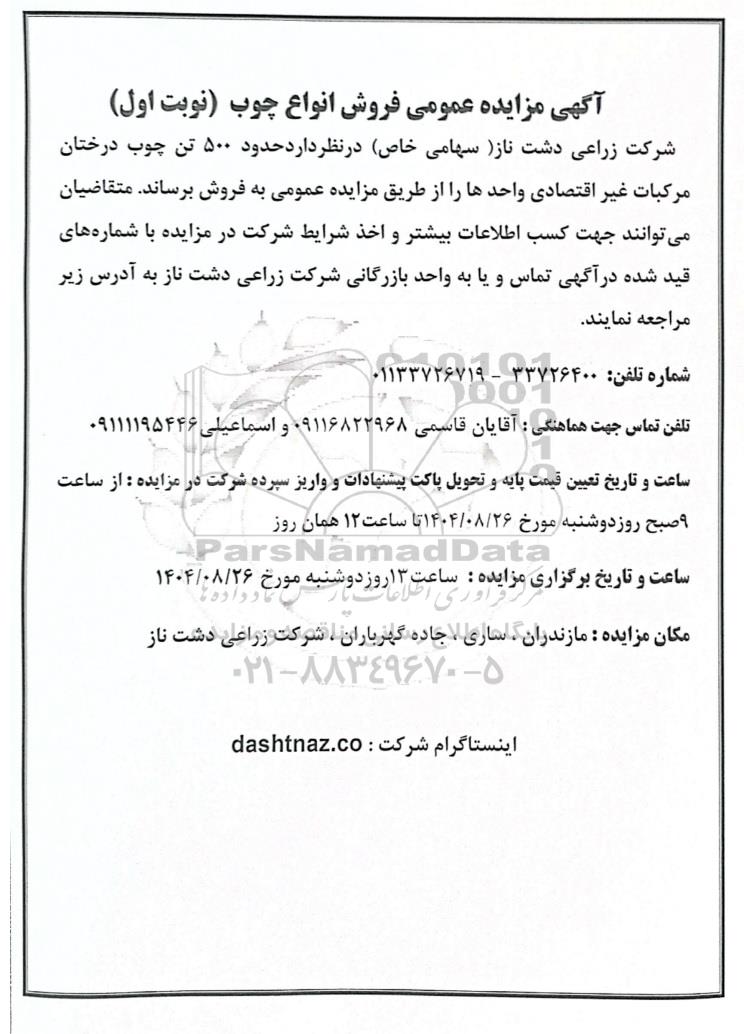 تلفن:5- 88349670 (021) فکس: 88349673 (021) Website: www.ParsNamadData.com E-mail: Info@ParsNamadData.com مزایده عمومی فروش انواع چوب