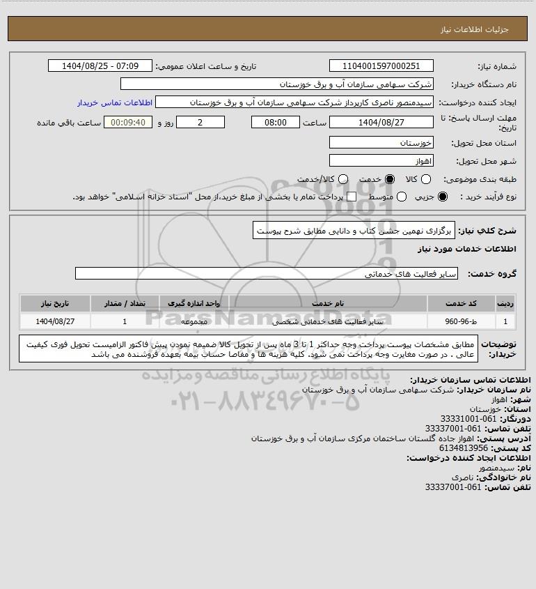 تلفن:5- 88349670 (021) فکس: 88349673 (021) Website: www.ParsNamadData.com E-mail: Info@ParsNamadData.com استعلام برگزاری نهمین جشن کتاب و دانایی مطابق شرح پیوست