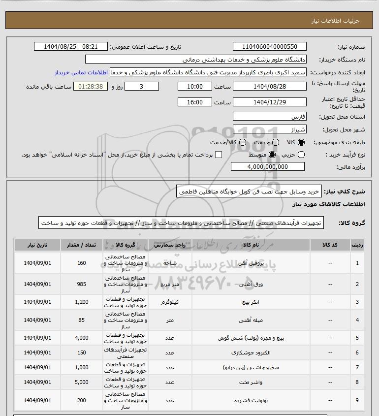 تلفن:5- 88349670 (021) فکس: 88349673 (021) Website: www.ParsNamadData.com E-mail: Info@ParsNamadData.com استعلام خرید وسایل جهت نصب فن کویل خوابگاه متاهلین فاطمی