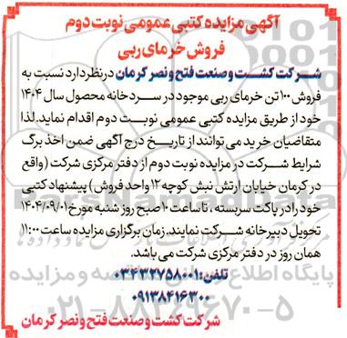 تلفن:5- 88349670 (021) فکس: 88349673 (021) Website: www.ParsNamadData.com E-mail: Info@ParsNamadData.com مزایده فروش خرمای ربی- نوبت دوم