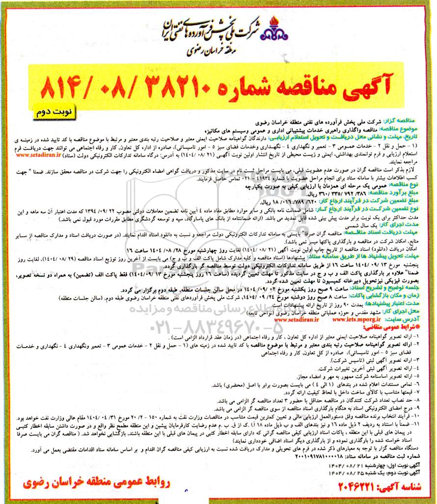 آگهی گزار شرکت ملی پخش فرآورده های نفتی منطقه خراسان رضوی