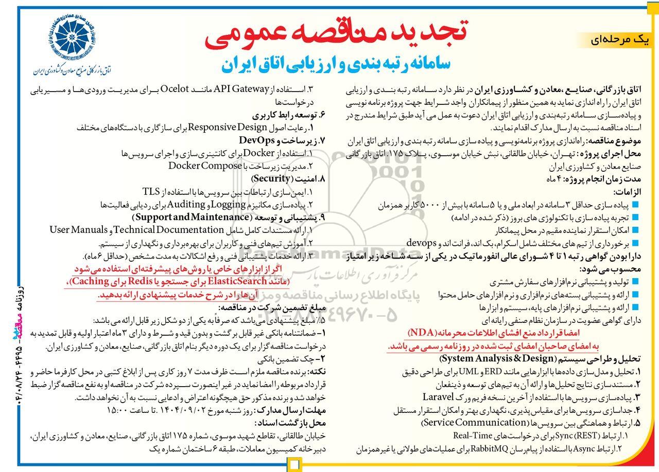 تجدید مناقصه عمومی سامانه رتبه بندی و ارزیابی اتاق ایران