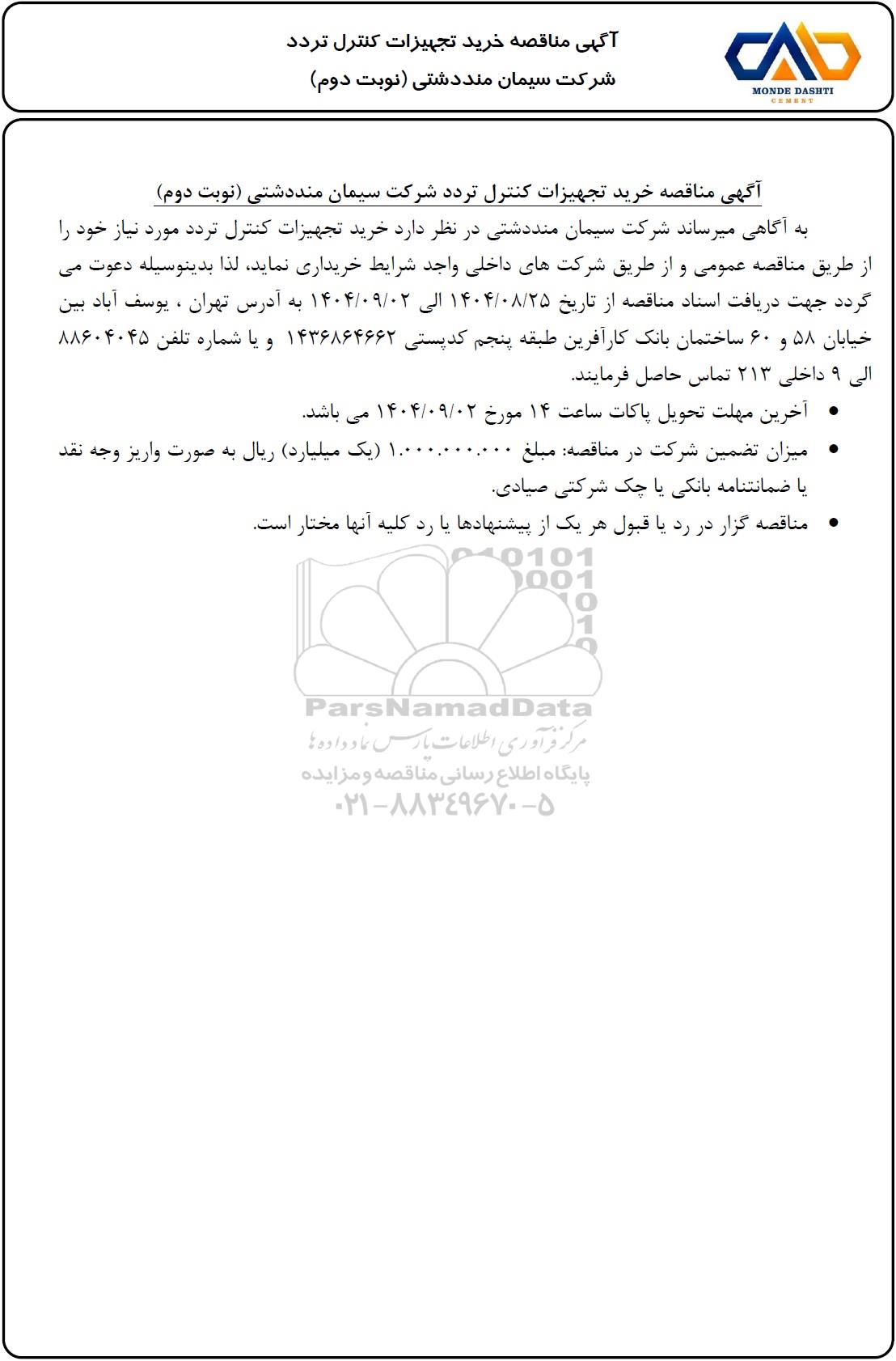 تلفن:5- 88349670 (021) فکس: 88349673 (021) Website: www.ParsNamadData.com E-mail: Info@ParsNamadData.com مناقصه خرید تجهیزات کنترل تردد - نوبت دوم