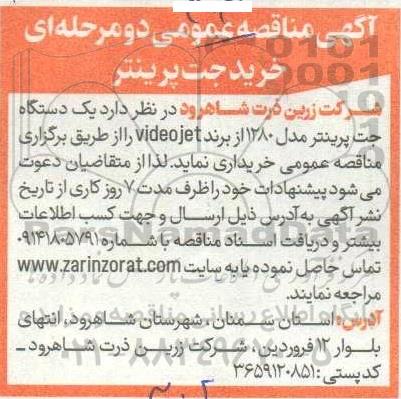 تلفن:5- 88349670 (021) فکس: 88349673 (021) Website: www.ParsNamadData.com E-mail: Info@ParsNamadData.com آگهی مناقصه عمومی دو مرحله ای خرید جت پرینتر
