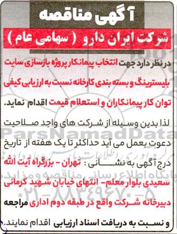 تلفن:5- 88349670 (021) فکس: 88349673 (021) Website: www.ParsNamadData.com E-mail: Info@ParsNamadData.com مناقصه انتخاب پیمانکار پروژه بازسازی سایت بلیسترینگ و بسته بندی کارخانه