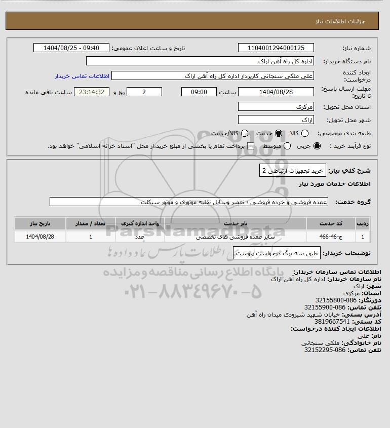 تلفن:5- 88349670 (021) فکس: 88349673 (021) Website: www.ParsNamadData.com E-mail: Info@ParsNamadData.com استعلام خرید تجهیزات ارتباطی 2