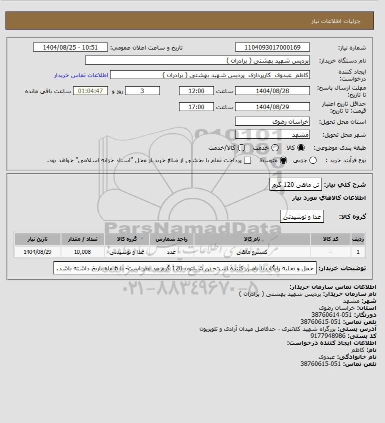 تلفن:5- 88349670 (021) فکس: 88349673 (021) Website: www.ParsNamadData.com E-mail: Info@ParsNamadData.com استعلام تن ماهی 120 گرم