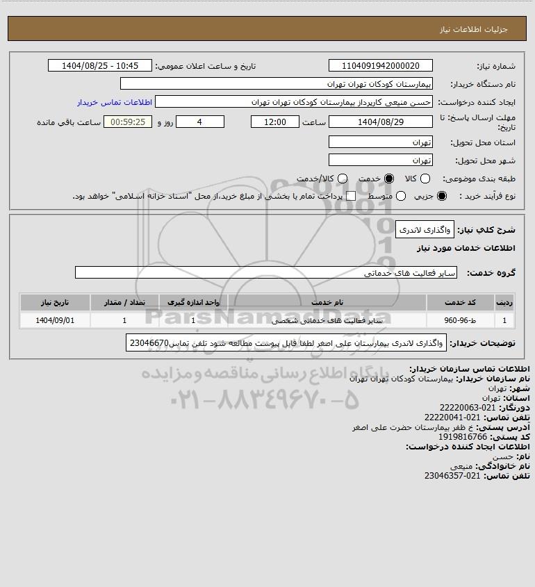 تلفن:5- 88349670 (021) فکس: 88349673 (021) Website: www.ParsNamadData.com E-mail: Info@ParsNamadData.com استعلام واگذاری لاندری