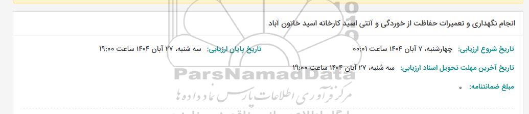 تلفن:5- 88349670 (021) فکس: 88349673 (021) Website: www.ParsNamadData.com E-mail: Info@ParsNamadData.com مناقصه انجام نگهداری و تعمیرات حفاظت از خوردگی و آنتی اسید کارخانه اسید خاتون آباد