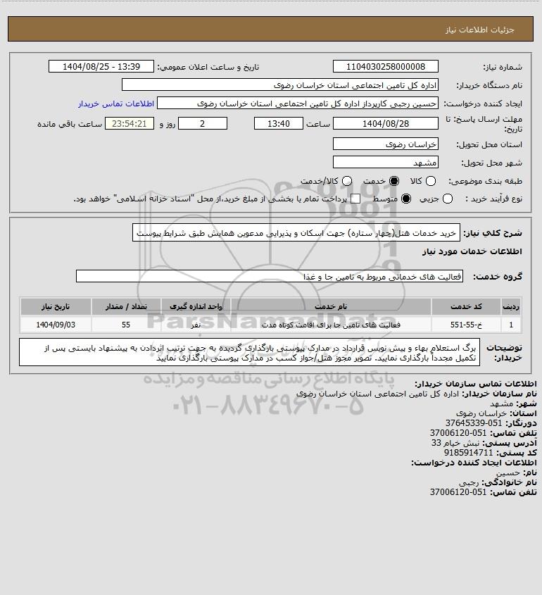 تلفن:5- 88349670 (021) فکس: 88349673 (021) Website: www.ParsNamadData.com E-mail: Info@ParsNamadData.com استعلام خرید خدمات هتل(چهار ستاره) جهت اسکان و پذیرایی مدعوین همایش طبق شرایط پیوست