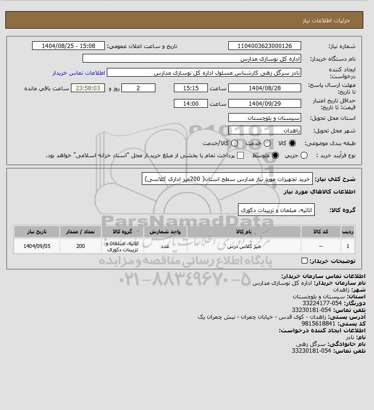 تلفن:5- 88349670 (021) فکس: 88349673 (021) Website: www.ParsNamadData.com E-mail: Info@ParsNamadData.com استعلام خرید تجهیزات مورد نیاز مدارس سطح استان( 200میز اداری کلاسی)