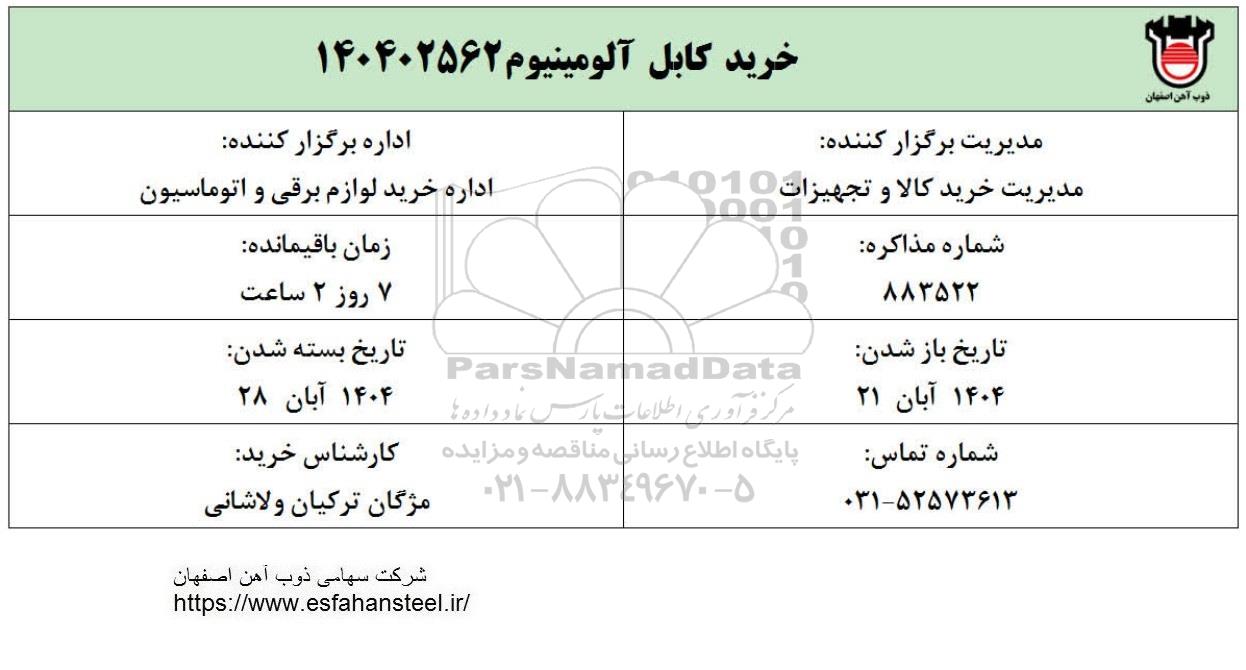 تلفن:5- 88349670 (021) فکس: 88349673 (021) Website: www.ParsNamadData.com E-mail: Info@ParsNamadData.com استعلام خرید کابل آلومینیوم