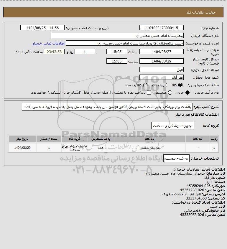 تلفن:5- 88349670 (021) فکس: 88349673 (021) Website: www.ParsNamadData.com E-mail: Info@ParsNamadData.com استعلام بالشت وپتو وبرانکارد با پرداخت 4 ماه وپیش فاکتور الزامی می باشد وهزینه حمل ونقل به عهده فروشنده می باشد