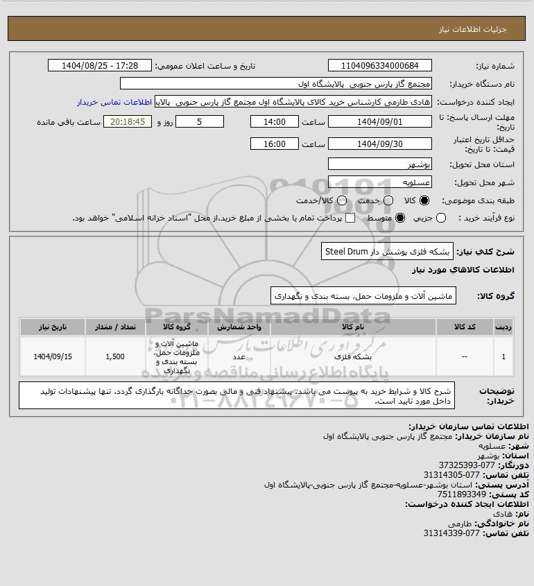 تلفن:5- 88349670 (021) فکس: 88349673 (021) Website: www.ParsNamadData.com E-mail: Info@ParsNamadData.com استعلام بشکه فلزی پوشش دار