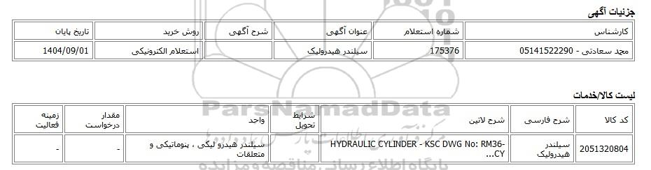 تلفن:5- 88349670 (021) فکس: 88349673 (021) Website: www.ParsNamadData.com E-mail: Info@ParsNamadData.com استعلام الکترونیکی سیلندر هیدرولیک