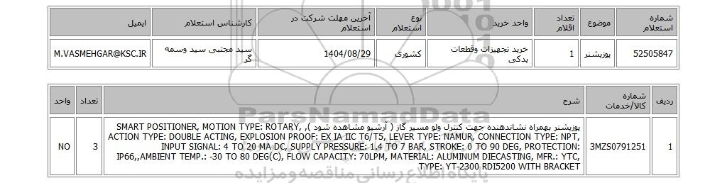 تلفن:5- 88349670 (021) فکس: 88349673 (021) Website: www.ParsNamadData.com E-mail: Info@ParsNamadData.com استعلام پوزیشنر