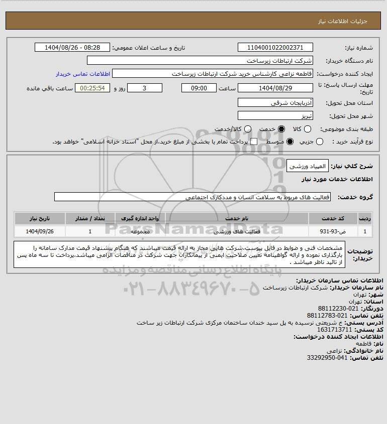 تلفن:5- 88349670 (021) فکس: 88349673 (021) Website: www.ParsNamadData.com E-mail: Info@ParsNamadData.com استعلام المپیاد ورزشی